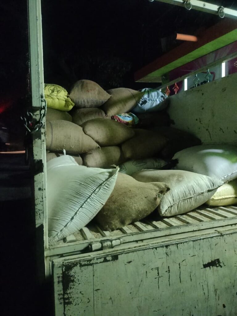 मौके पर पिकअप वाहन में 70 कट्टी धान परिवहन हेतु लोड पाया गया तथा प्रोपराइटर मनोज किराना स्टोर, नूनेरा के गोदाम में 120 कट्टी धान अवैध रूप से भंडारित पाया गया। कुल 190 कट्टी (लगभग 82 क्विंटल) धान जप्त करते हुए गोदाम को सील कर विधिवत सुपुर्द किया गया।