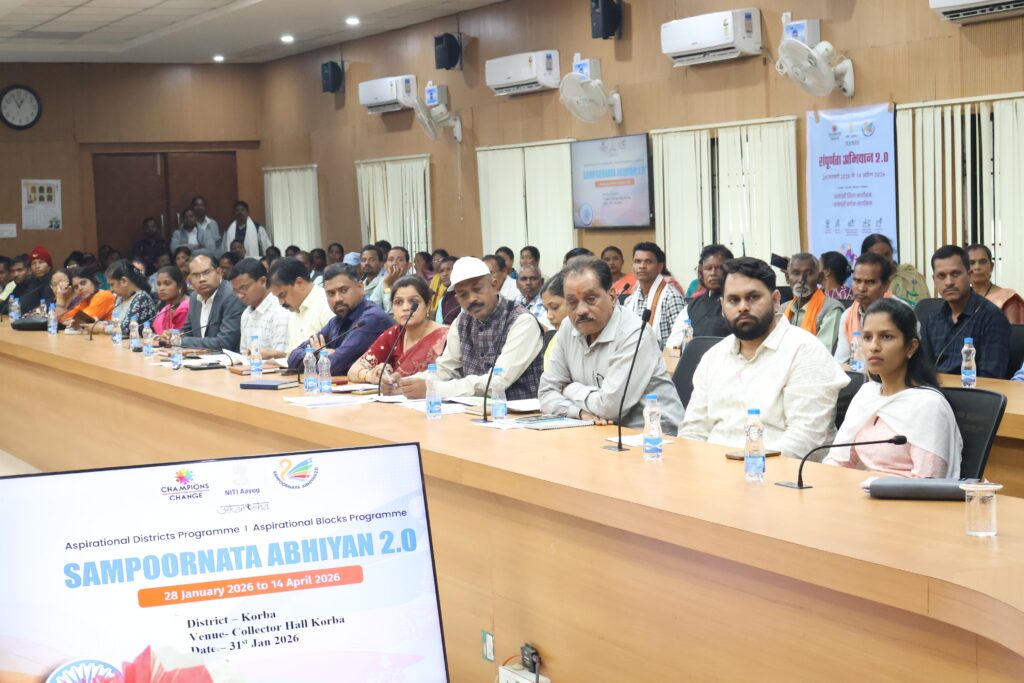 छत्तीसगढ़ शासन के वाणिज्य, उद्योग, आबकारी, सार्वजनिक उपक्रम एवं श्रम मंत्री श्री लखनलाल देवांगन की अध्यक्षता में आज कलेक्ट्रेट सभाकक्ष में नीति आयोग के आकांक्षी जिला कार्यक्रम अंतर्गत संपूर्णता अभियान 2.0 का औपचारिक शुभारंभ किया गया। इस अवसर पर मंत्री श्री देवांगन ने कहा कि विगत वर्ष संपूर्णता अभियान 1.0 के तहत निर्धारित संकेतकों पर योजनाबद्ध तरीके से कार्य कर महत्वपूर्ण उपलब्धियाँ हासिल की गईं। प्रधानमंत्री श्री नरेंद्र मोदी के दिशा-निर्देशन में नीति आयोग द्वारा कोरबा जिले को विकास की तेज राह पर आगे बढ़ाने के उद्देश्य से संपूर्णता अभियान 2.0 लागू किया गया है। उन्होंने कहा कि सरपंचों सहित सभी जनप्रतिनिधियों की सहभागिता और विभागीय अधिकारियों के समन्वय से आकांक्षी जिले के लिए निर्धारित लक्ष्यों को प्राप्त करते हुए कोरबा को विकास व प्रगति के पथ पर आगे ले जाना उनकी प्राथमिकता है। मंत्री श्री देवांगन ने कहा कि इस अभियान के सभी मानकों को प्राप्त करने में सभी की सक्रिय भागीदारी आवश्यक है। योजनाओं का सफल क्रियान्वयन और उनका लाभ पात्र व्यक्तियों तक सुनिश्चित रूप से पहुँचे, इसके लिए समर्पित भाव से कार्य करना जरूरी है।