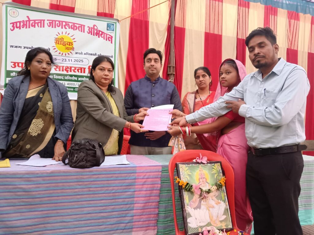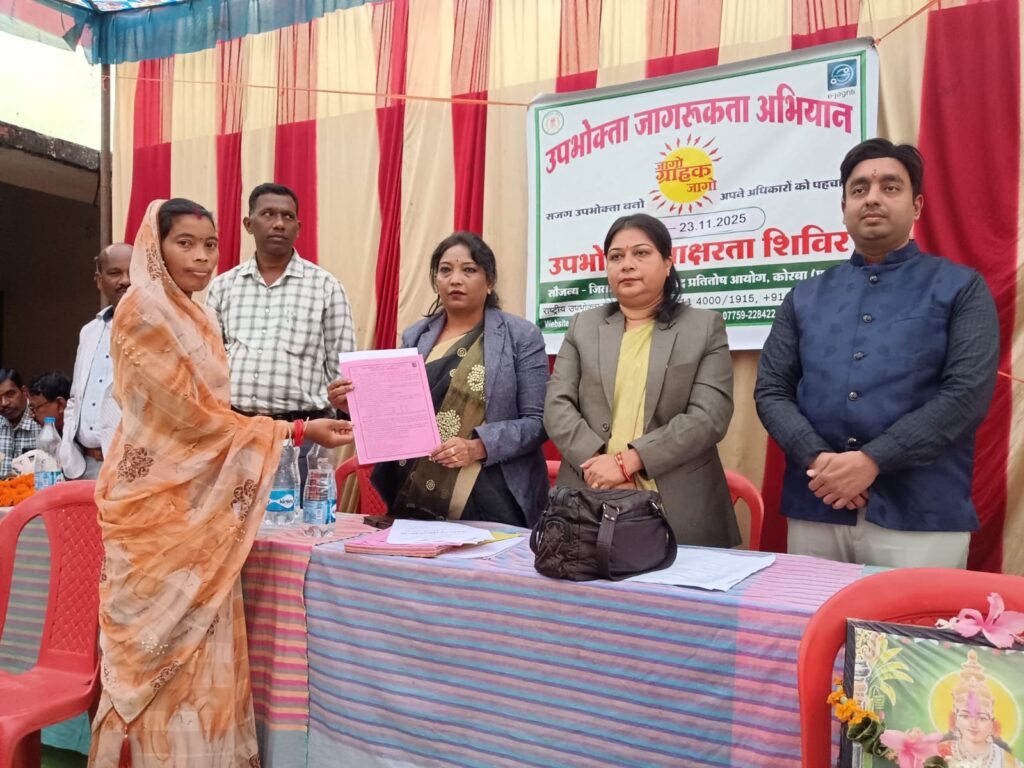 उपभोक्ता जागरूकता शिविर में महिलाओं, छात्र-छात्राओं, वरिष्ठ नागरिक , ग्रामीण, जनप्रतिनिधि, मितानिन समूह व आम उपभोक्ताओं को उनके उपभोक्ता अधिकारों और कानूनी संरक्षण के बारे में विस्तृत रूप से जानकारी दी गई। आयोग की अध्यक्षा श्रीमती रंजना दत्ता एवं सदस्यगण सुश्री ममता दास व श्री पंकज कुमार देवड़ा ने बताया कि उपभोक्ता संरक्षण अधिनियम 2019 के तहत प्रत्येक उपभोक्ता को सुरक्षित, गुणवत्तापूर्ण वस्तु एवं सेवा प्राप्त करने, उचित मूल्य चुकाने, जानकारी प्राप्त करने, शिकायत दर्ज करने और क्षतिपूर्ति पाने का वैधानिक अधिकार है। उन्होंने ग्रामीणो को उपभोक्ता कानून के संबंध मे जानकारी देते हुए बताया कि यदि किसी वस्तु या सेवा में कमी, अनुचित व्यापार व्यवहार, ओवर बिलिंग, भ्रामक विज्ञापन या सेवा प्रदाय में लापरवाही हो तो उपभोक्ता, जिला उपभोक्ता आयोग के समक्ष सरल प्रक्रिया के माध्यम से वाद प्रस्तुत कर सकता है। किराना दवा, इलेक्ट्रॉनिक सामान, बीमा, बैंकिंग, स्वास्थ्य सेवा और ऑनलाइन शॉपिंग, डिजिटल ऑनलाईन फ्राड में उपभोक्ता किस प्रकार सचेत रहकर अपने हितों की रक्षा कर सकते हैं। उनके द्वारा डिजिटल और ऑनलाइन प्लेटफॉर्म के माध्यम से उपलब्ध सुविधाओं पर प्रकाश डालते हुए बताया गया कि उपभोक्ता आज विभिन्न पोर्टल और ऑनलाइन प्रणाली के जरिये शिकायत दर्ज कर सकते हैं। प्रकरण की स्थिति देख सकते हैं और परामर्श प्राप्त कर सकते हैं। साथ ही, उन्होंने ऑनलाइन फ्रॉड, फिशिंगच, फेक वेबसाइट, फर्जी कस्टमर केयर नंबर और डिजिटल पेमेंट से जुड़ी जोखिमों के प्रति सावधान करते हुए सुरक्षित डिजिटल व्यवहार के व्यावहारिक सुझाव दिए। कार्यक्रम मे उपस्थित विशेष आमंत्रित वक्ता जिला अधिवक्ता संध के अध्यक्ष श्री गणेश कुलदीप ने ग्रामीणो को उनके अधिकारो कानूनी संरक्षण के बारे मे जानकारी देते हुए उपभोक्ता अधिकारो से अवगत कराया। उन्होने दैनिक दिनचर्या में उपयोग होने वाले सामाग्रीयो का संदर्भ देते हुए ग्रामीणो को उनके अधिकारो के संबंध में जागरूक किया। तथा प्रत्येक खरीदी गये वस्तुओ का बिल लेने के लिए कहा गया। कार्यक्रम मे उपस्थित जनपद सदस्य श्रीमती देवी बाई राजवाड़े ने जिला उपभोक्ता आयोग कोरबा द्वारा आयोजित इस शिविर का लाभ उठाने एवं उपभोक्ता कानूनो के संबंध मे सरकार द्वारा किये जा रहे प्रयासो की विस्तृत रूप से जानकारी दी गई।